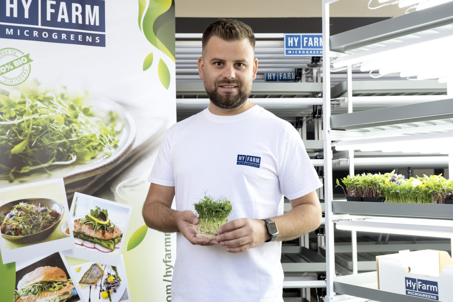 En primer lugar, tendrás un producto único en el mercado, gracias a las técnicas de producción. Tendrás un producto similar cada semana. Esa es la ventaja de la producción controlada en interiores. Esto nos ayuda a obtener una microplanta con el mismo estándar cada vez: la misma altura, densidad, color, textura, etc. Además, gracias a la calidad de la materia prima y la tecnología de producción, obtendremos un producto que durará, permanecerá intacto en la cocina del cliente incluso durante 1 semana. Además de estos aspectos, en la producción no se utiliza tierra, sino un sustrato biodegradable, hecho que les otorga el estatus de plantas sin tierra. Eso traerá un producto 100% limpio a la nevera que ni siquiera requiere lavado. No utilizamos productos químicos ni pesticidas y podemos producir con la misma calidad constante independientemente de la temporada.